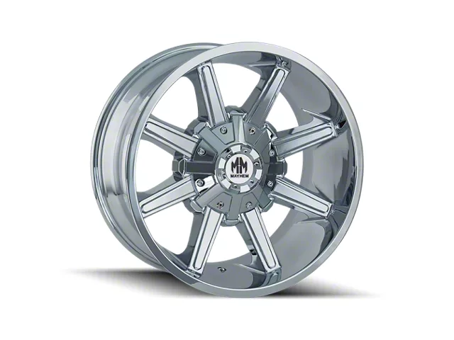 The 17x9 Mayhem Wheels Arsenal Chrome 6-Lug Wheel; 17x9; -12mm Offset is completed in a high-quality chrome finish that will make others green with envy. For added protection and good looks, this wheel features a durable clear coat that can withstand the hazards of daily driving.