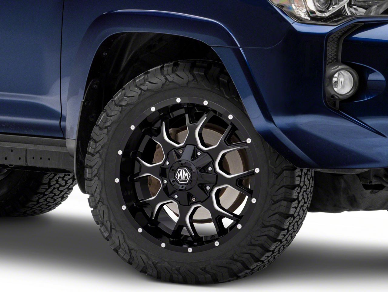 Application. This Mayhem Wheels Warrior Black Milled 6-Lug Wheel; 20x9; 18mm Offset with a backspace of 5.709 Inch, 145.1mm; and bolt pattern of 6 x 139.7mm (6 x 5.5-Inch), contributes to alignment, driving stability, and ensures a perfect fit with the vehicle model. Designed to fit the 2010-2024 4Runner. Sold individually.