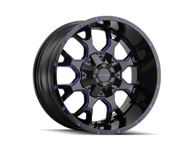 Mayhem Wheels Warrior Black with Prism Blue 6-Lug Wheel; 20x9; 0mm Offset - Experience the sleek elegance of the Mayhem Wheels wheel. Its matte black finish adds a touch of sophistication to your vehicle, enhancing its overall appearance without compromising on durability. Perfect for a variety of vehicle styles, this wheel is a testament to the brand's commitment to quality and aesthetic excellence.