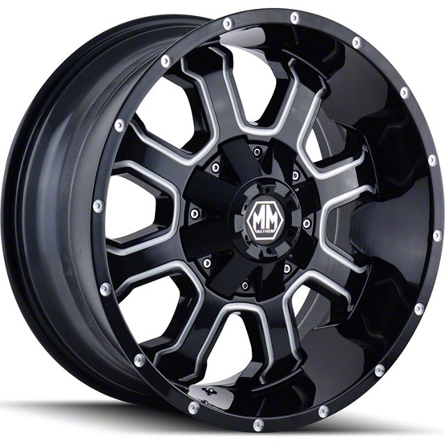 Mayhem Wheels Fierce Gloss Black Milled Wheel; 17x9. Enhance your vehicle's look with the Mayhem Wheels Fierce Gloss Black Milled Wheel. This premium wheel adds a touch of elegance and class to your vehicle, complementing its sophisticated aesthetic.