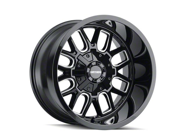 The 20x9 Mayhem Wheels Cogent Gloss Black Milled Wheel is completed in a high-quality gloss black finish with steel milled accents that will be the envy of everyone. For added protection and good looks, there is a durable clear coat that withstands the rigors of everyday driving,