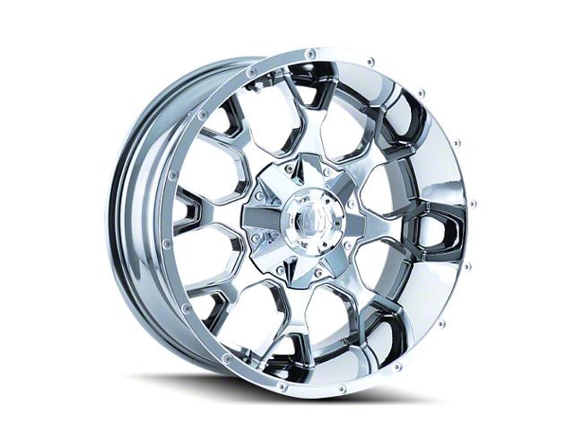 This 18x9 Mayhem Wheels Warrior Chrome Wheel is completed in a high-quality, polished chrome finish that will be the envy of everyone. There's a durable clear coat that protects against driving hazards.