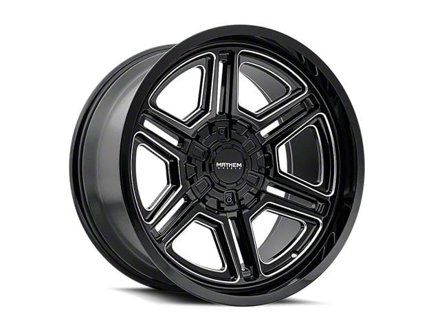 The 20x10 Mayhem Wheels Hermosa Gloss Black Milled Wheel is completed in a high-quality gloss black finish with steel milled accents that will be the envy of everyone. For added protection and good looks, there is a durable clear coat that withstands the rigors of everyday driving,