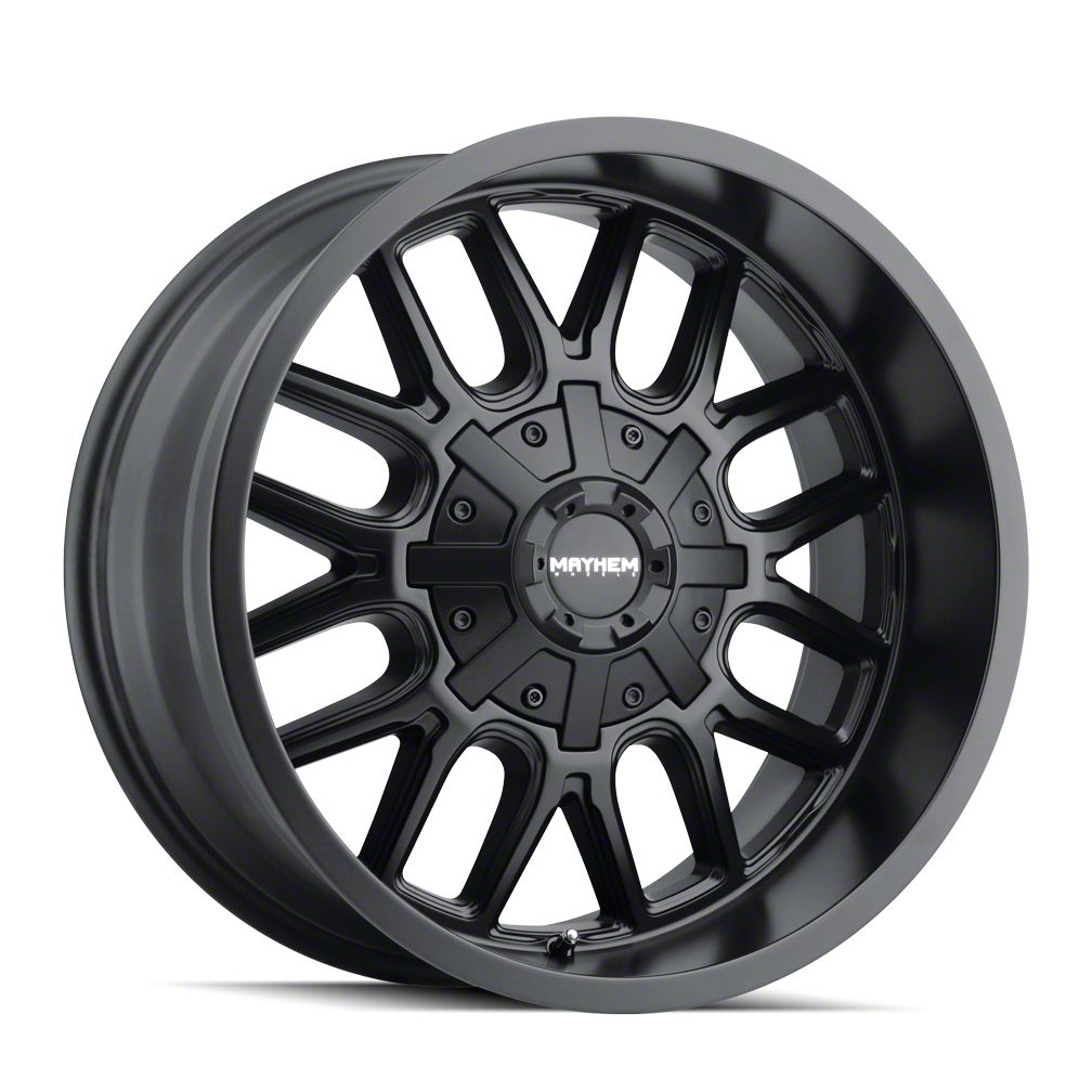 The 18x9 Mayhem Wheels Cogent Matte Black Wheel is completed in a high-quality matte black finish that will be the envy of everyone. For added protection and good looks, there is a durable clear coat that withstands the rigors of everyday driving,