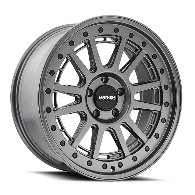 This 17x9 Mayhem Wheels Compass Matte Gunmetal Wheel is completed in a high-quality gunmetal finish that will be the envy of everyone. There's a durable clear coat that protects against driving hazards.