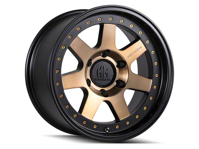 Mayhem Wheels Prodigy Matte Black with Bronze Tint Wheel; 17x9 offers a striking balance between style and durability. The design speaks to the brand's commitment to quality, enhancing the vehicle's appearance with its distinct look. This wheel, with its unique aesthetics, is ideal for drivers who appreciate a blend of modern design and robust functionality.
