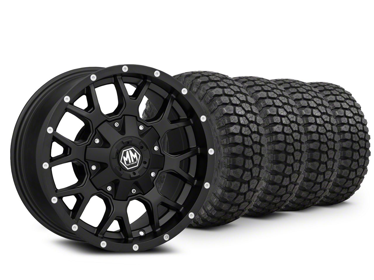 Mounted and Balanced Wheel and Tire Kit. This wheel and tire combo kit features (4) 17x9 Mayhem Wheels Warrior Matte Black 6-Lug Wheels and (4) Ironman Mud-Terrain All Country 33" - 285/70R17 tires that have been put together into an easy to buy kit that arrives to your door already mounted and balanced ready to be installed on your vehicle.