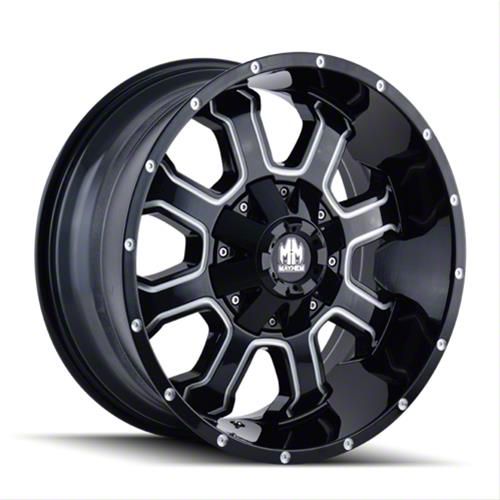 The 18x9 Mayhem Wheels Fierce Gloss Black Milled 6-Lug Wheel is completed in a high-quality gloss black finish with mirror cut accents for a striking contrast in appearance that everyone will envy.