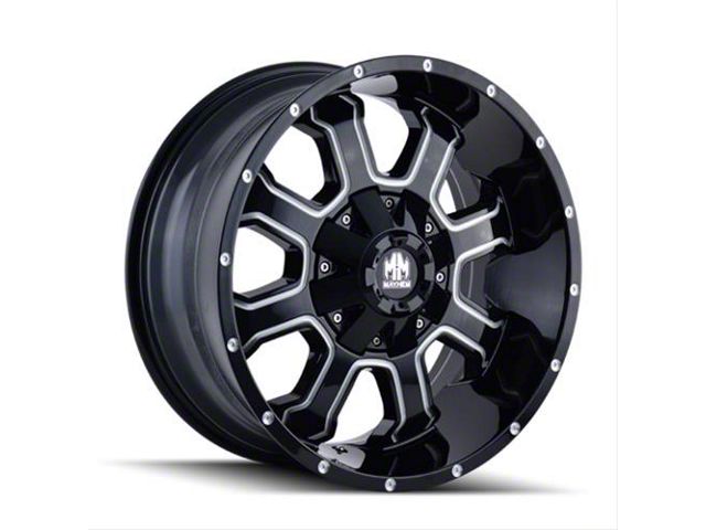The 18x9 Mayhem Wheels Fierce Gloss Black Milled 6-Lug Wheel is completed in a high-quality gloss black finish with mirror cut accents for a striking contrast in appearance that everyone will envy.