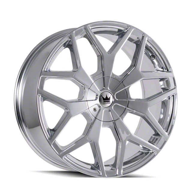 Mazzi Profile Chrome Wheel; 20x8.5; 35mm Offset is a perfect blend of style and rugged design, making it a standout choice for those looking to enhance their vehicle's aesthetic appeal. Its bold, dark metallic finish pairs seamlessly with a wide variety of vehicle styles, offering both modernity and durability. Built by Mazzi, this wheel is designed to elevate your vehicle's appearance with its robust presence.