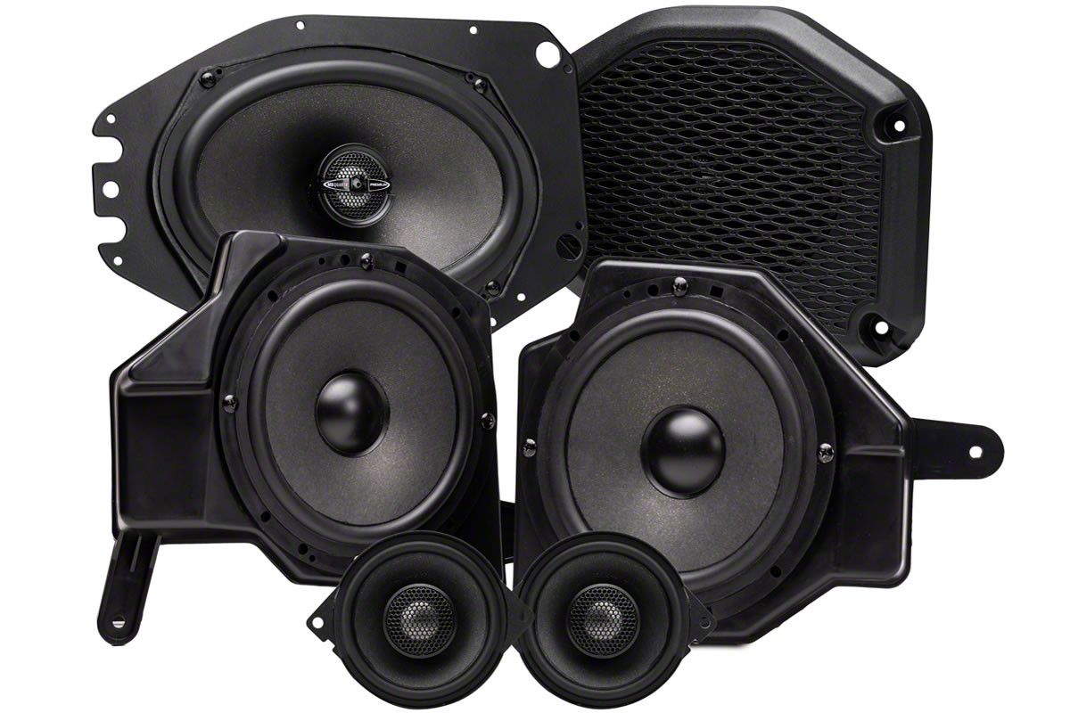 Set Inclusions. This audio system upgrade comes with (2) 3.50-inch coaxial speakers that are designed to fit your vehicle’s factory dash. It also comes with (2) 6.50-inch midbass drivers that are mounted to your lower dash. And lastly, it includes (2) 6 x 9-inch coaxial speakers that are fitted to your sound bar locations.