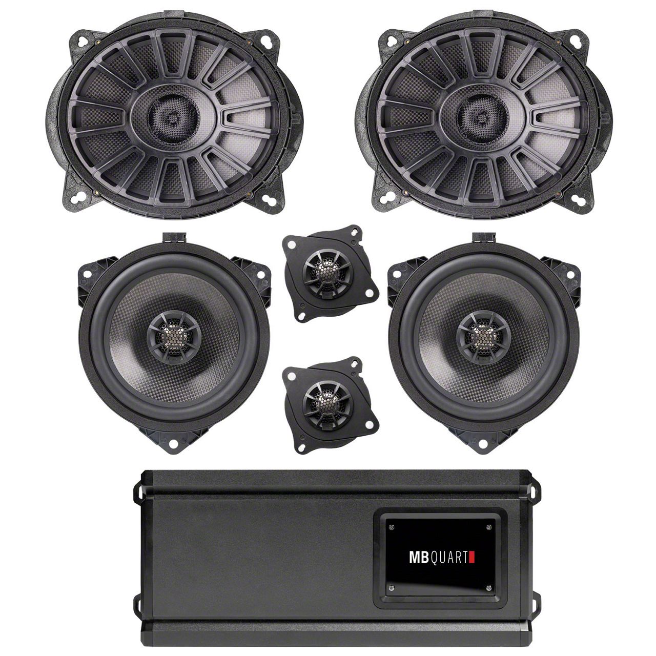 High-Performance Components. Featuring lightweight polypropylene cones, butyl rubber surrounds, and silk dome tweeters, the MB Quart Six Speaker STAGE 6 OEM Audio System Upgrade for Aftermarket Source Unit speakers are built for clarity, durability, and dynamic range. These materials resist distortion and environmental wear, making them ideal for both daily driving and off-road adventures. The result is crisp vocals, punchy bass, and immersive soundstage performance.