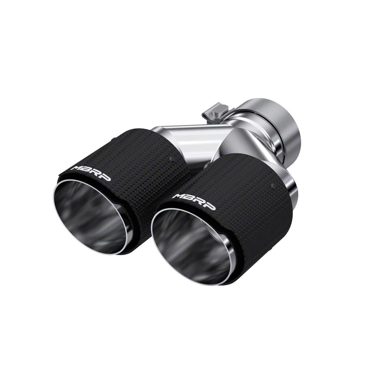 Sound and Style. Add style and resonance to your exhaust system with the MBRP 4-Inch Dual Exhaust Tip in Carbon Fiber and Fits a 3-Inch Tailpipe. This dual exhaust tip accommodates a 3-inch tailpipe and offers an upscale look with its carbon fiber finish.
