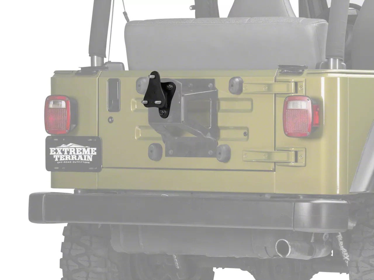 Application. Fits any 1997 - 2006 Wrangler TJ with a rear spare tire mount.