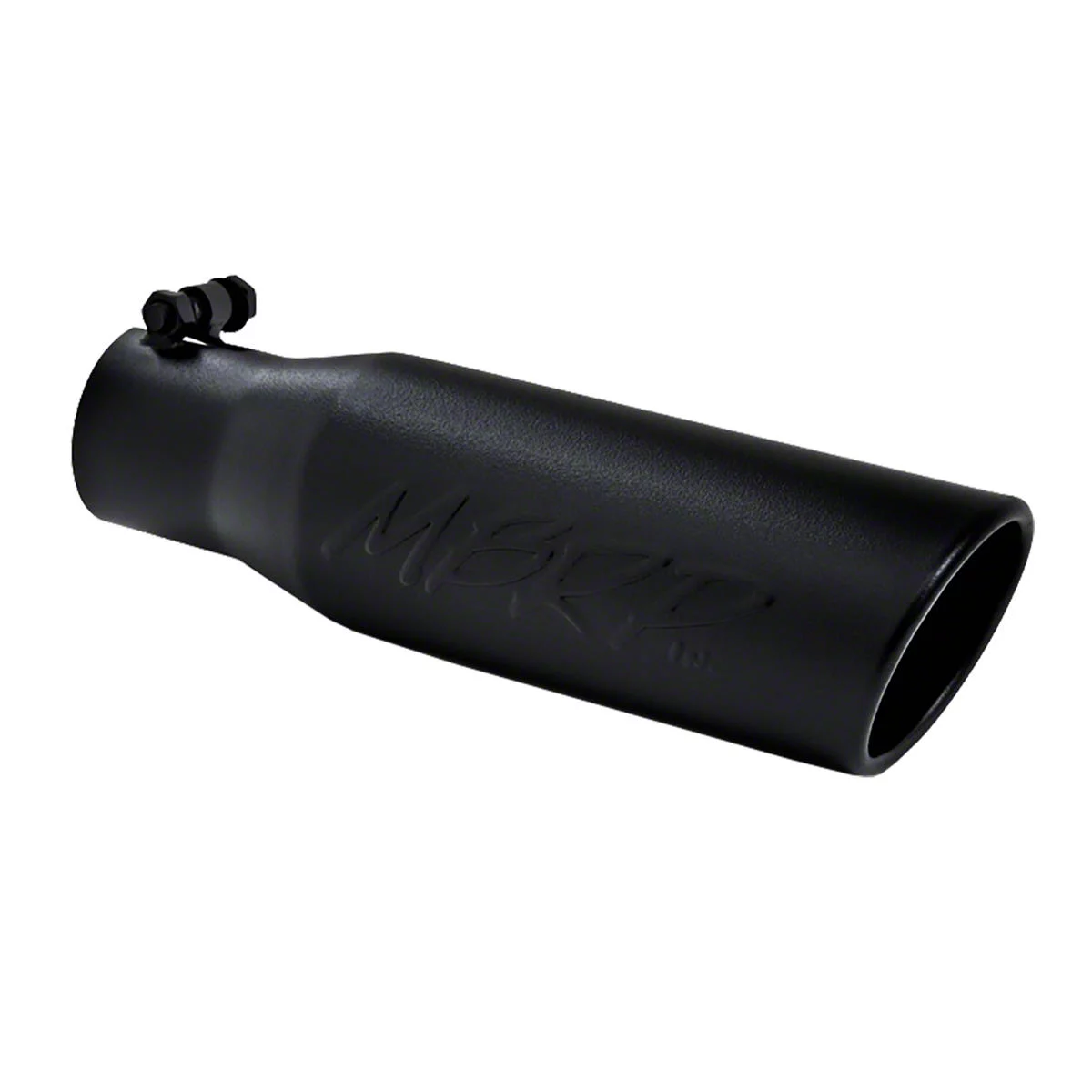 Stylish Exhaust Tips. Crown your Tacoma's high-performance exhaust system with this MBRP 3.50-Inch Angled Rolled End Exhaust Tip in Black. This stylish and aggressive-looking tip provides an eye-catching exclamation point to your truck’s exhaust system, guaranteed to get nods of approval from those who see it.