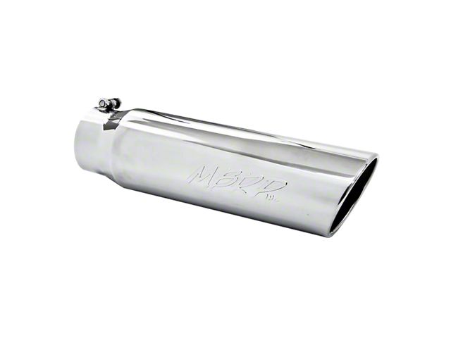 MBRP Styling. Add classic styling to your truck with a MBRP 5-Inch Polished Angled Rolled End Exhaust Tip. Sold individually, this Exhaust Tip was designed for use on vehicle's equipped with a 4 inch exhaust system. This polished Exhaust Tip is the perfect appearance upgrade for your truck.