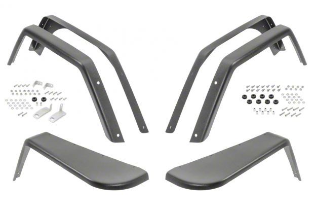 High-Clearance Design. Upgrade your Jeep Wrangler with the MCE Fenders Gen II 3-Inch Width Flat Fender Flares; Front and Rear; OE-Style Textured Black, available in both front and rear configurations. These fender flares provide extra tire coverage, protecting your Jeep from rocks, debris, and mud while providing an aggressive look. With their wider coverage, these fender flares allow you to install larger tires without the need for a lift kit, giving you more ground clearance and better off-road capability.