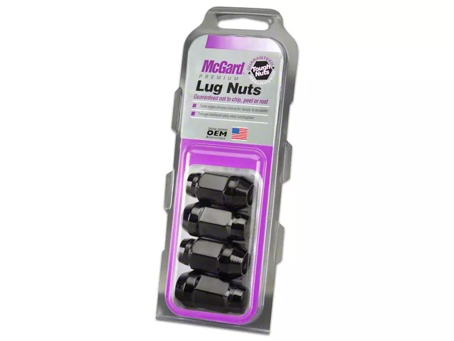 Reliable Street Security. The McGard Black Bulge Cone Seat Style Lug Nut Kit; 14mm x 1.5; Set of 4 is the ultimate blend of security, durability, and stylish design for your Jeep Wrangler JL. It provides you with a set of four premium lug nuts, each featuring a robust 14mm x 1.5 thread size that promises a perfect fit for your vehicle. Each lug nut in this kit boasts a unique black bulge cone seat style. This design not only enhances the aesthetic appeal of your wheels but also offers a superior grip and fit on the wheel bolt, ensuring a secure and solid connection. Crafted from high-quality steel, these lug nuts feature a protective black coating that adds an extra layer of corrosion resistance.