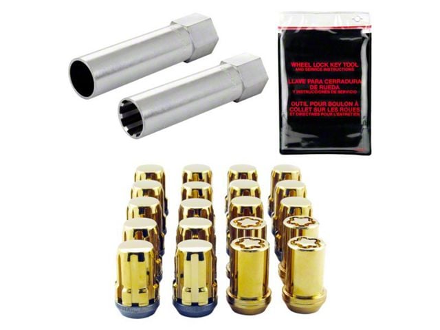 Comprehensive Protection. The McGard Gold Spline Drive 5-Lug Wheel Installation Kit offers a reliable and secure method for installing wheels on your vehicle. Engineered for enhanced durability and performance, this kit ensures a tighter fit and greater seating surface, making it essential for vehicle owners seeking robust wheel security and longevity.