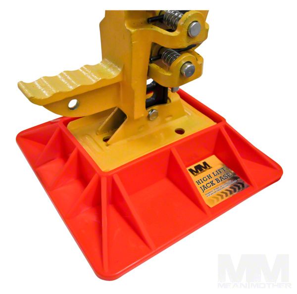 Durable Build Quality. The Mean Mother Recovery Jack Sand Base is crafted from ultra-durable high-impact plastic. Its wide 11.62 x 11.62-inch footprint features gussets that adds rigidity to the component, reducing flex when used. Additionally, this sand base comes with a bright orange color for easy visibility.