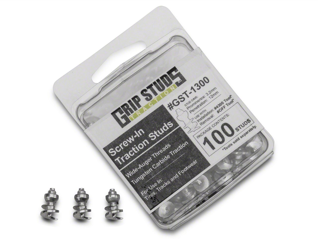 Screw In Studs. The Medium High Performance Carbide Grip Studs feature a unique, easy to use and remove, screw in design perfect for Off road enthusiasts. Make use of a standard hand drill and our adapter bit to screw these studs in on your favorite tires for your Jeep's next off road adventure or on road snow use where the law allows it. Their ease of installation, removal and extreme construction is unrivaled making these studs the number one answer to your traction needs.