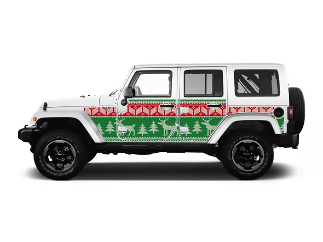 Application. This MEK Body Armor; Ugly Sweater Holiday Edition is designed to fit 2007-2018 Jeep Wrangler JK 4-Door models.