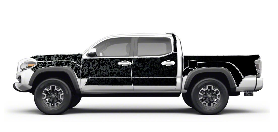 Application. This MEK Body Armor; Ghost Camo Black is designed to fit 2016-2023 Toyota Tacoma Double Cab models.