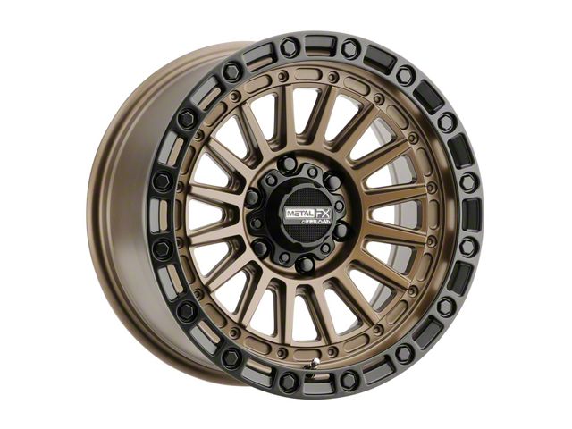 Metal FX Offroad Rogue Bronze with Satin Black Wheel; 17x8.5; 0mm Offset This wheel brings a commanding presence with its distinct design, making it a bold choice for enthusiasts looking to upgrade their vehicle’s look. The premium finish and attention to detail reflect the high standards of Metal FX Offroad, giving any vehicle a modern and aggressive edge. Its styling pairs seamlessly with rugged builds or sleek street setups alike, elevating curb appeal with ease.