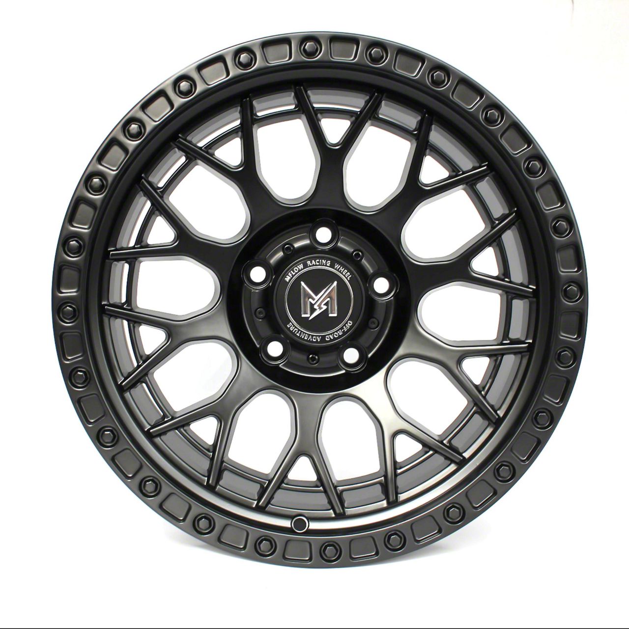 The 17x9 MFlow Racing MF02 Matte Black 6-Lug Wheel; 17x9; 0mm Offset is completed in a high-quality matte black finish, which will be sure to turn heads. For added durability and appearance, there is a durable clear coat that withstands the rigors of the road.