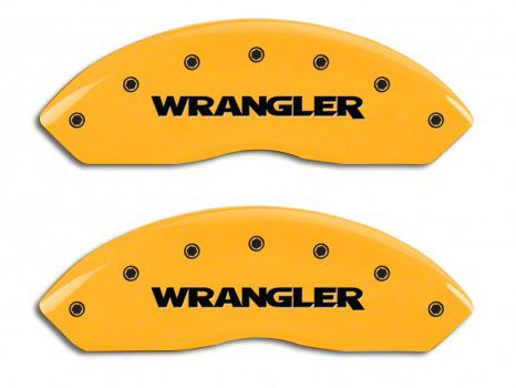 Application. These MGP Yellow Caliper Covers with “WRANGLER” Logo for both front and rear wheels are made to fit the 2007-2018 Jeep Wrangler JK, if they have 17” wheels or larger.