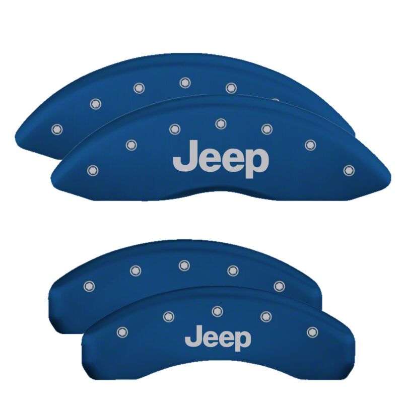 MGP Brake Caliper Covers with Jeep Logo; Blue; Front and Rear (11-21 Jeep Grand Cherokee WK2, Excluding SRT8 & Trackhawk)Find parts that fit my vehicle