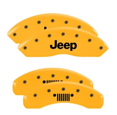 Offer Enhanced Style and Appeal. These MGP Yellow Caliper Covers with Jeep Grille Logos offer a cost-effective way to enhance the style and curbside appeal of your Jeep Wrangler JL. The caliper covers are designed to hide the imperfections of your old brake calipers without sacrificing function. With the covers fun, bright yellow finish and CNC-engraved logo with black inlay, you get a set of accessories that adds a complementing flare to your Jeep’s exterior appeal.