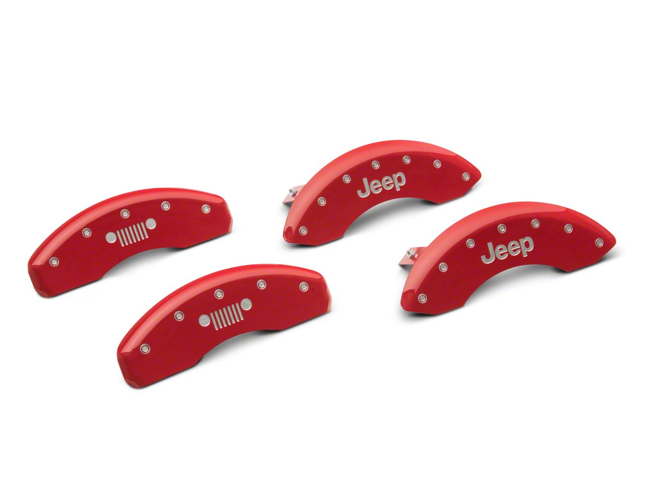 Upgraded Appearance. MGP Caliper Covers with Jeep Logo are the perfect way to achieve the big brake look on your vehicle. These caliper covers really make your wheels stand out from the crowd, with the bright red finish and CNC machined Jeep logo guaranteed to attract attention.