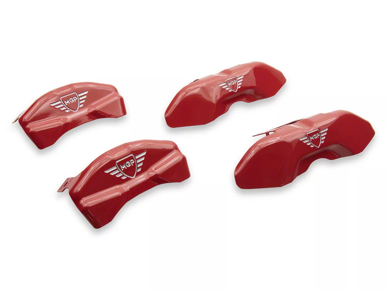 Transform your Wheels. Become a new demon of the off-road with the MGP Red Caliper Covers with MGP Logo - Front & Rear. These caliper covers blitz the senses with a high speed engraved MGP logo, gloss red finish, and a heavy-duty 6061-T6 aerospace aluminum construction.
