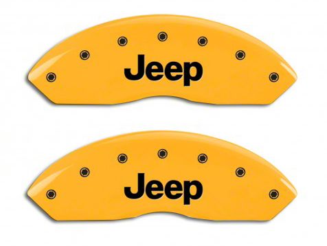 Enhance Look. Upgrade the appearance of your brakes by installing this pair of front MGP Yellow Caliper Covers. The fine yellow powder coat finish makes the wheel look appealing when driving. More so, the silver ‘JEEP’ logo adds a personal touch to it. Made through CNC machining, Hydraulic forming and TIG welding, the covers are simply resilient and durable. It is tested stress-tested for long-term on and off-road driving, and heat soak to make sure it is of top-tier quality.