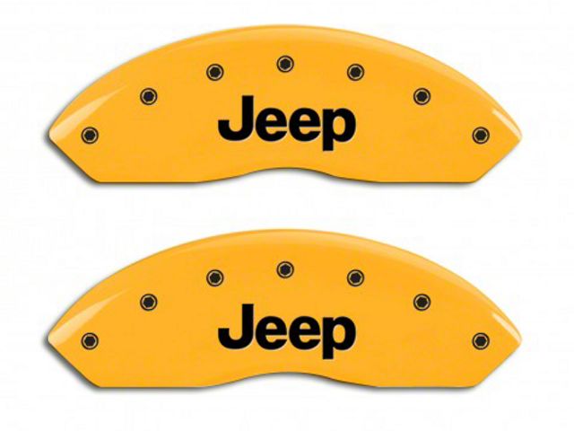 Excellent Custom Styling. If you are tired of your Wrangler's bare metal brake calipers, consider covering them using MGP Yellow Caliper Covers w/ Jeep Logo - Front & Rear. They feature an engraved Jeep Logo on all the front and rear covers for a customized, stylish look.