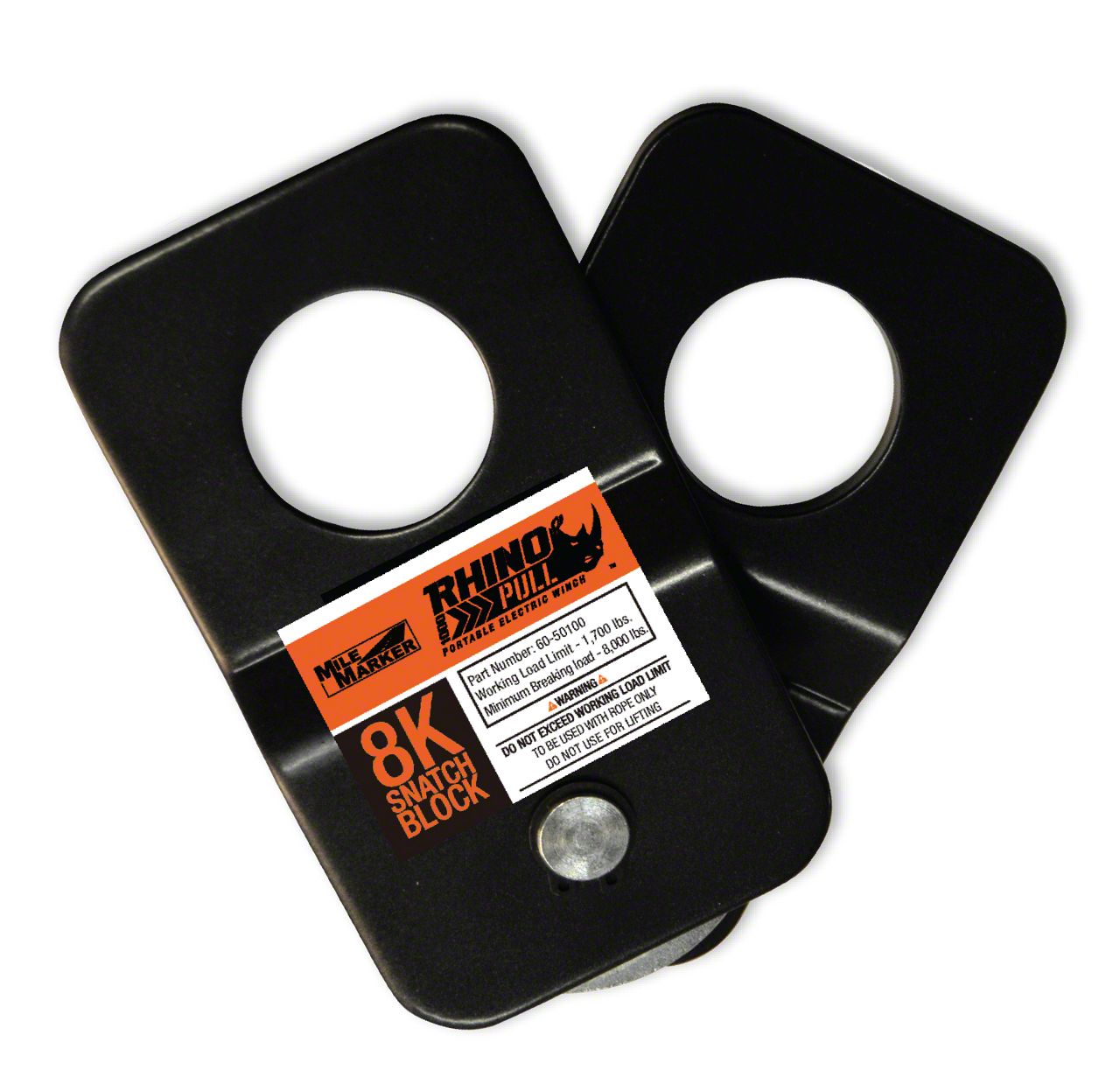 Universal Recovery Utility. Mile Marker Snatch Block is designed to enhance recovery capabilities for a wide range of vehicles and winching setups. With universal fit and an 8,000-pound capacity, this snatch block is the ideal companion for demanding off-road or worksite recovery tasks where strength and versatility are essential.