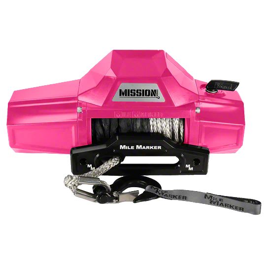 Equip Your Vehicle with High-Performance Recovery Power. The Mile Marker 10,000 Pounds Mission Winch with Black Synthetic Rope and Black Hook in Bubblegum Pink is designed to deliver powerful recovery performance while adding a unique visual element to your vehicle. With a 10,000-pound pulling capacity, this winch is capable of handling demanding recovery tasks, making it an essential tool for off-road enthusiasts and those who frequently venture into challenging terrains. The black synthetic rope and hook provide both strength and durability, while the bubblegum pink finish offers a distinctive, personalized touch that sets your vehicle apart from the rest.