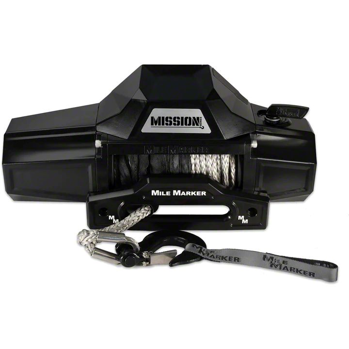 Mile Marker 8,000 lb. Mission Winch with Black Synthetic Rope and Black Hook; Covert Black (Universal; Some Adaptation May Be Required)