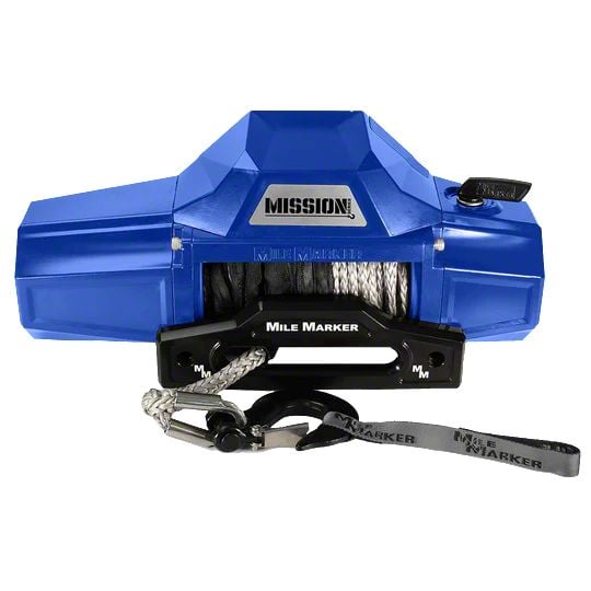 Mile Marker 10,000 lb. Mission Winch with Black Synthetic Rope and Black Hook; Brilliant Blue (Universal; Some Adaptation May Be Required)