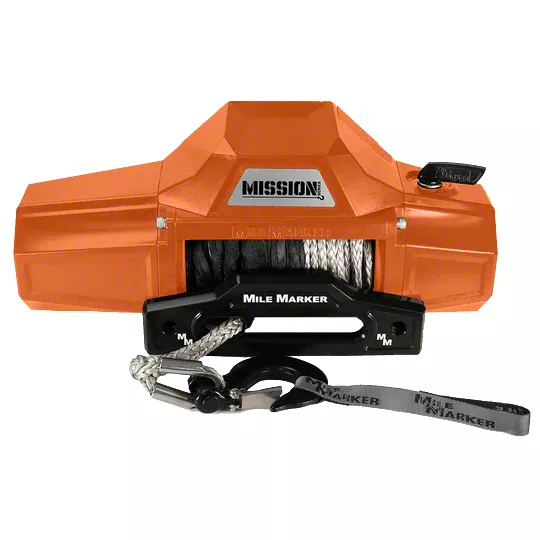 Mile Marker 10,000 lb. Mission Winch with Black Synthetic Rope and Black Hook; Team Orange (Universal; Some Adaptation May Be Required)