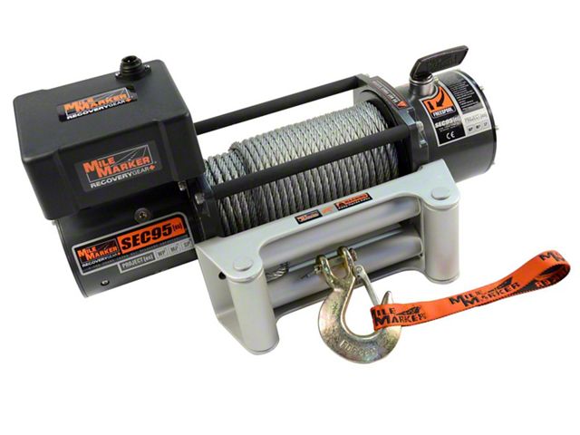 Description. The Mile Marker SEC95 premium Jeep/Truck/SUV winch with a rugged 9,500 pound pull strength stands up to most any off-road environment. Powerful series-wound motors and rugged planetary gear sets are the backbone of this winch.
