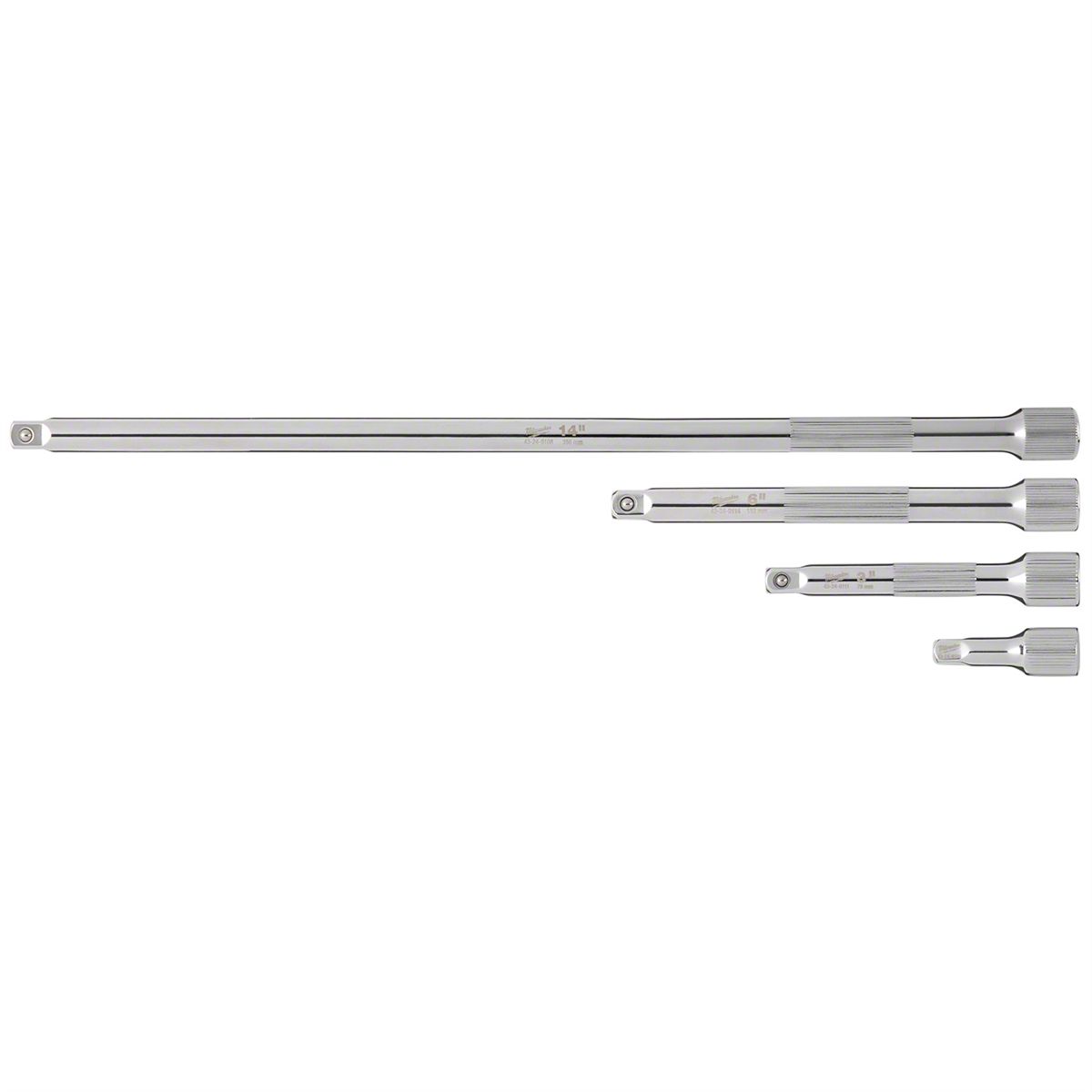 The extensions in this 4 piece set feature the largest knurling surface, offering the most control. Each extension has knurling on the female drive end to help when hand-tightening fasteners or working with oily materials. Additionally, select extensions in the set have knurling on the shaft for more control. The set includes a durable compact storage rack designed to optimize drawer space for long-term use. Chrome plating offers corrosion and rust protection. All Milwaukee® Mechanics Hand Tools are backed by a lifetime guarantee.