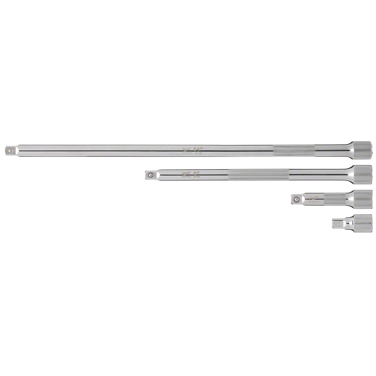 The extensions in this 4 piece set feature the largest knurling surface, offering the most control. Each extension has knurling on the female drive end to help when hand-tightening fasteners or working with oily materials. Additionally, select extensions in the set have knurling on the shaft for more control. The set includes a durable compact storage rack designed to optimize drawer space for long-term use. Chrome plating offers corrosion and rust protection. All Milwaukee® Mechanics Hand Tools are backed by a lifetime guarantee.