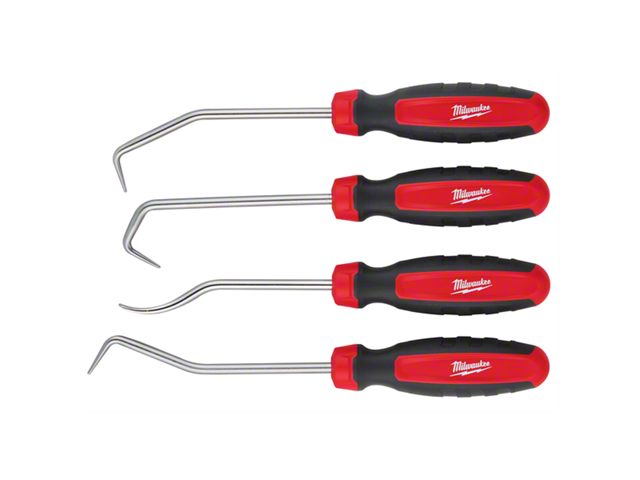 MILWAUKEE® hose picks feature an all-metal core for up to 50% more durability. Each pick has a specific angle for different applications while the reinforced tip resists bending when loosening stubborn hoses. The flat pick provides puncture protection and reduces damage to hoses. Milwaukee Comfort grip handles give you increased tool control and comfort. This set features a hook, 90°, 45°, and flat hose pick along with a durable long-term storage tray for easy access and organization. These chrome-plated picks provide superior rust protection. All MILWAUKEE Mechanics Hand Tools are backed by a lifetime guarantee.