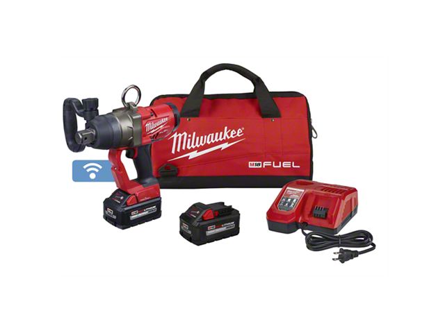 M18 FUEL™ 1" High Torque Impact Wrench w/ ONE-KEY™ is the world�s first cordless 1” High Torque Impact Wrench. The POWERSTATE™ Brushless Motor delivers up to 1,800 ft-lbs of Nut-Busting Torque and 1,500 ft-lbs of fastening torque, making this the most powerful cordless impact torque wrench and enabling you to complete the most demanding applications. At only 13 lbs with battery, the tool is up to 7 lbs. lighter than corded units, providing you with less fatigue while making overhead applications easier to complete on the job site. The battery-powered impact wrench provides you with cordless convenience and eliminates your need for compressors, generators, cords, and hoses. This reduces your cost of ownership by lowering energy costs and eliminating routine maintenance on compressors and generators. With no cord or hoses, you have greater portability and the ability to complete applications you were not able to do with a corded or pneumatic unit. The REDLINK PLUS™ Intelligence ensures you achieve maximum performance and protects your high torque impact gun against overloads, over-heating, and over-discharge. M18™ REDLITHIUM™ Battery Packs are compatible with all M18™ tools, providing you with more work per charge and more work over the life of the pack. The 4-Mode DRIVE CONTROL™ provides you with greater control over the output speed and power of the high power impact wrench. The ONE-KEY™ capabilities provide you with the ability to Customize, Track and Manage the impact wrench. ONE-KEY™ technology also gives you the ability to set a repeatable torque output for maximum control. In addition to the impact wrench, this kit includes two M18™ HIGH OUTPUT™ XC8.0 batteries, an M18™ & M12™ Rapid Charger, and a contractor bag.