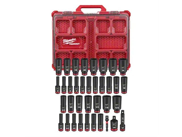 MILWAUKEE® SHOCKWAVE Impact Duty™ Socket Set features the boldest, longest-lasting markings and extreme impact durability in high torque applications. The stamped and ink-filled size marking enables you to select the right socket every time throughout the life of the socket. Engineered with high-strength forged steel for optimized performance in heavy-duty applications. The non-slip hex geometry prevents fastener rounding. The Milwaukee dual-hole design and ring groove allow for easy socket attachment and removal. Sets can be kept organized in the included PACKOUT™ Low-Profile Organizer with a clear top for easy identification of parts at a glance. The Low-Profile Organizer is part of MILWAUKEE® PACKOUT Modular Storage System, allowing for customization of storage systems to easily transport and organize tools and accessories. The cases are impact-resistant and nest together for easy stacking and storage. All MILWAUKEE® SHOCKWAVE Impact Duty ™ Sockets and Extensions are backed by Milwaukee's Lifetime Guarantee and meet ASME industry standards.