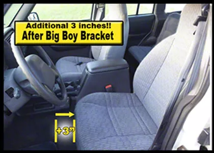 Enhanced Seating Comfort. The Misch 4x4 BigBoy Seat Brackets are designed to improve driving ergonomics for taller individuals in 1995-2001 Jeep Cherokee XJ models. By shifting the seat position back 3 inches, these brackets provide added legroom and a more relaxed driving posture for increased comfort during both daily commutes and extended off-road travel.