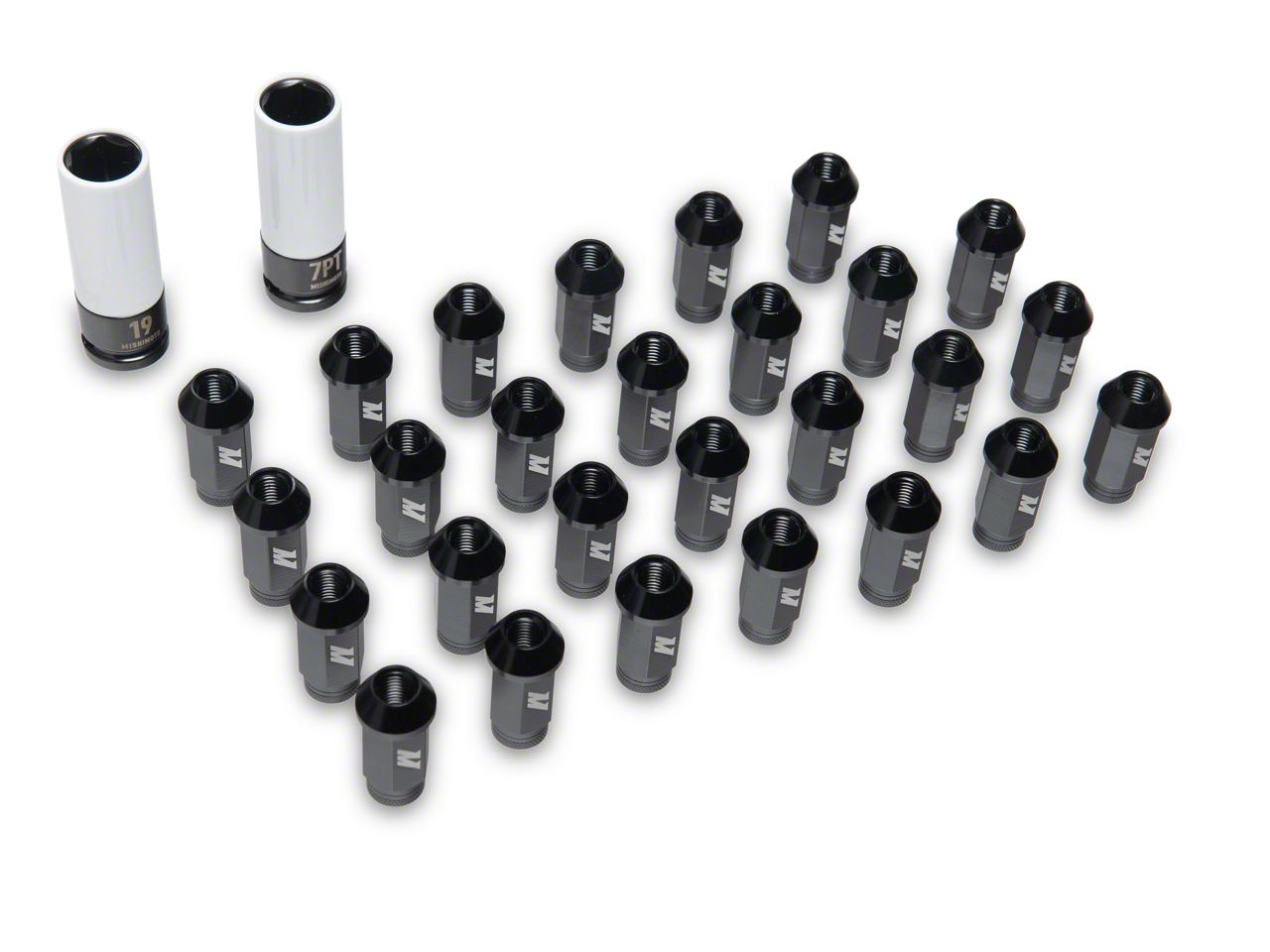 Intense Wheel Grip. Not satisfied with the way your tires look? Fortify your wheel mounting and add extra rugged flare with this Mishimoto Black Locking Lug Nut Kit. Manufactured from dense aluminum steel and machine-refined to ensure snug fitment, these lug nuts will definitely give your massive Bronco tougher looks and better wheel operation.