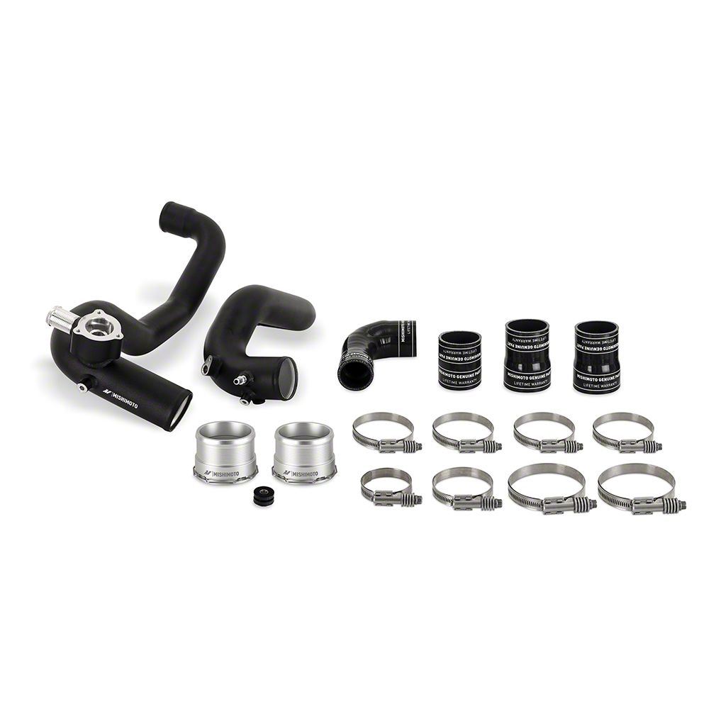 Description. Mishimoto has developed a direct-fit intercooler pipe kit for the 2021+ Ford Bronco 2.3L EcoBoost that allows you to maximize the performance potential of your 2.3L Bronco. Our kit replaces the weak and unattractive plastic piping with high-flowing, durable aluminum piping and silicone boots with DuraCore technology. The Mishimoto intercooler pipes flow up to 61% better than the stock pipes, allowing your 2.3L EcoBoost to breathe freely and make the most of its turbo boost. DuraCore boots coupled with constant-tension worm gear clamps provide superior strength and blowout resistance, ensuring boost always makes it to its destination. Available with a sleek polished finish or powder-coated in stealthy wrinkle black, these pipes are a great addition to every 2.3L Bronco from daily driving to the office, to trailblazing through the woods.